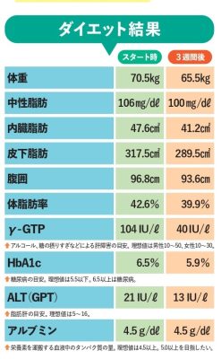 ・1週間で体重3㎏減、 3週間で約5㎏減!