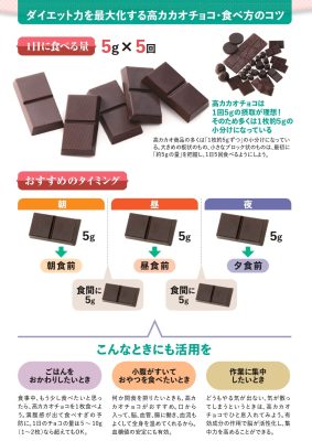 「おいしいから自然と続けられる」のが高カカオチョコの最大の魅力です。食前と食間のひと工夫で、無理なくダイエットしましょう。