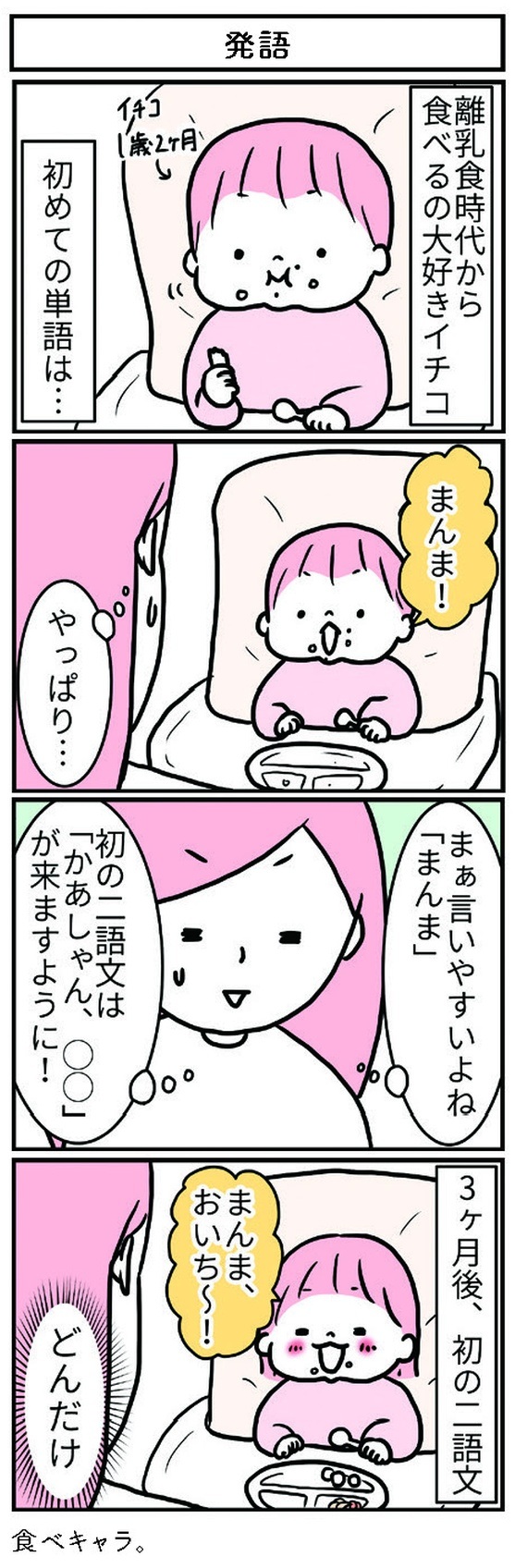 食べるのが大好きな娘。最初に覚えた言葉はやっぱり「まんま」。二つ目は…?【育児ってこんなに笑えるんや! #16】