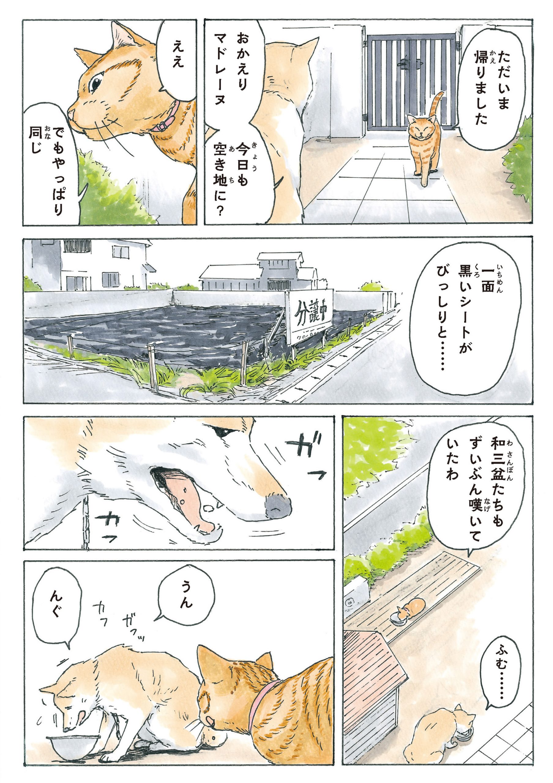 半年前ゲリラ豪雨の日に、ふらりとやってきたアカトラの猫に「マドレーヌ」と名付けたかのこちゃん。そしてマドレーヌ夫人は、老犬の柴犬・玄三郎の妻になる!?