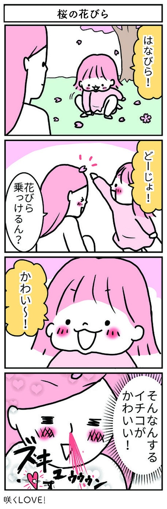 桜の花びらを拾って、乗っける。場所は母の…⁉その行動、鼻血ものかわいさ!!【育児ってこんなに笑えるんや! #26】