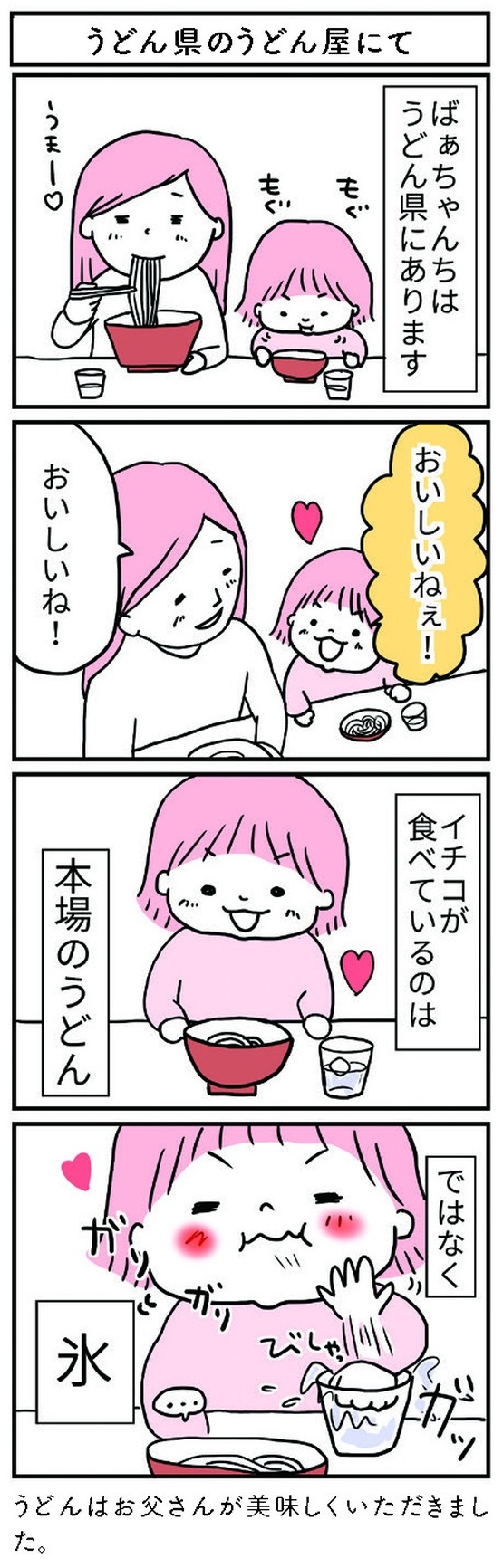 「おいしいね!」母娘で本場のうどんに舌鼓…と思いきや、わが子が食べていたのは!?【育児ってこんなに笑えるんや! #29】