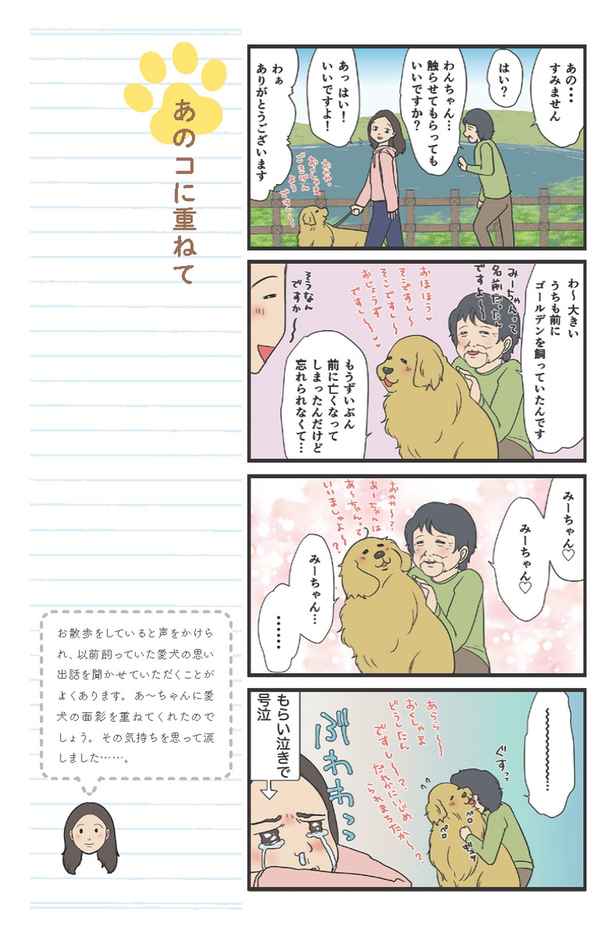 亡くなったゴールデンを想う女性が、わが家の愛犬に触れ…もらい泣きして号泣…【おさんぽですし! おしゃべり犬とイライラ猫の日記 #16】