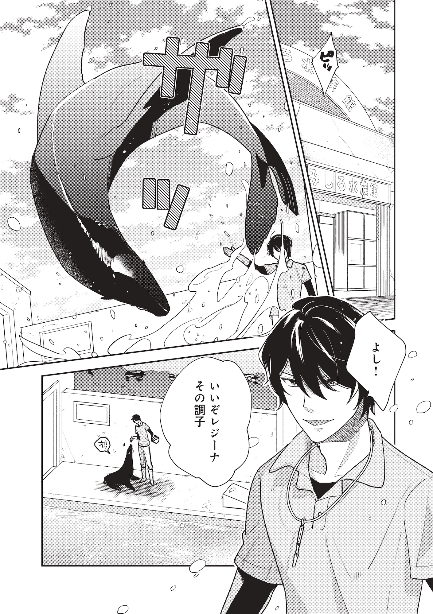 大水槽の前で涙を流していると、コワモテなイケメン飼育員・渡来に「そこに長時間居座ンな」と凄まれ、