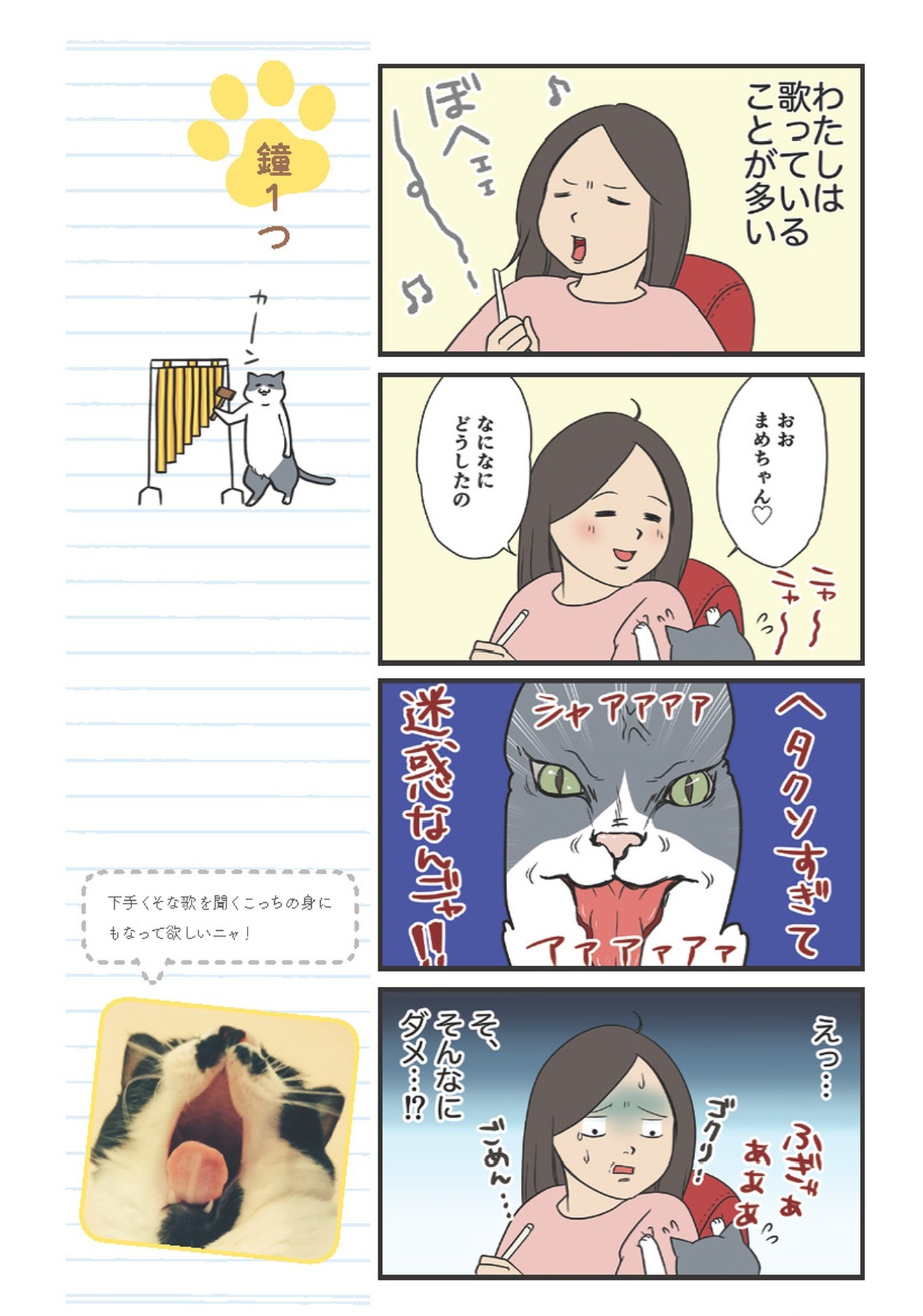 私が歌う度に、愛猫が苦味つぶしたような表情をするのは気のせい?【おさんぽですし! おしゃべり犬とイライラ猫の日記 #24】
