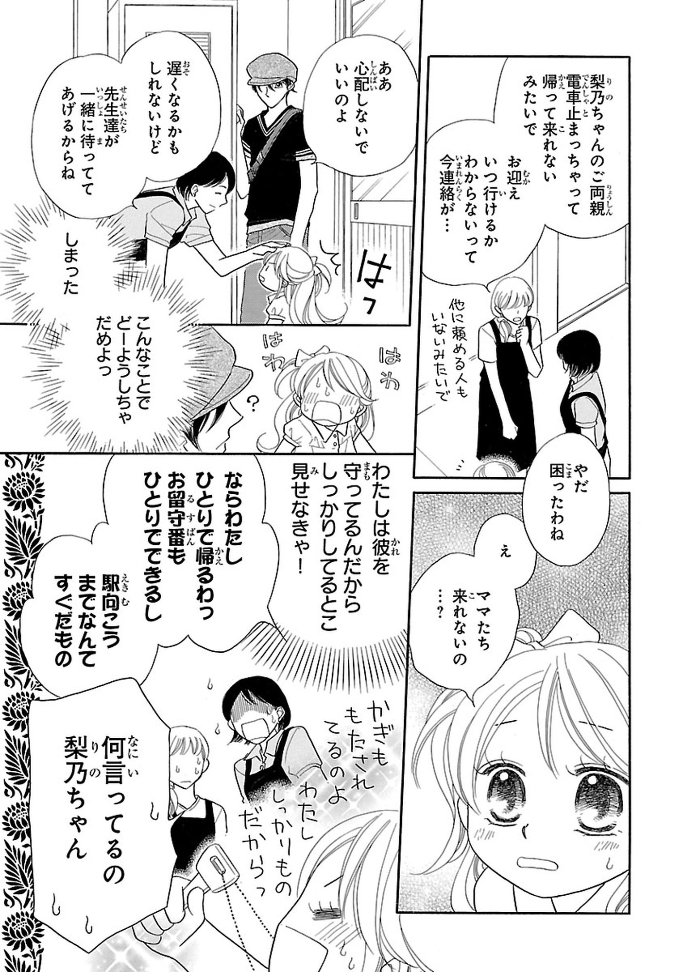 好奇心旺盛で行動力抜群の梨乃の恋心は瞬く間にヒートアップし、無邪気な暴走が園内を賑わせる。