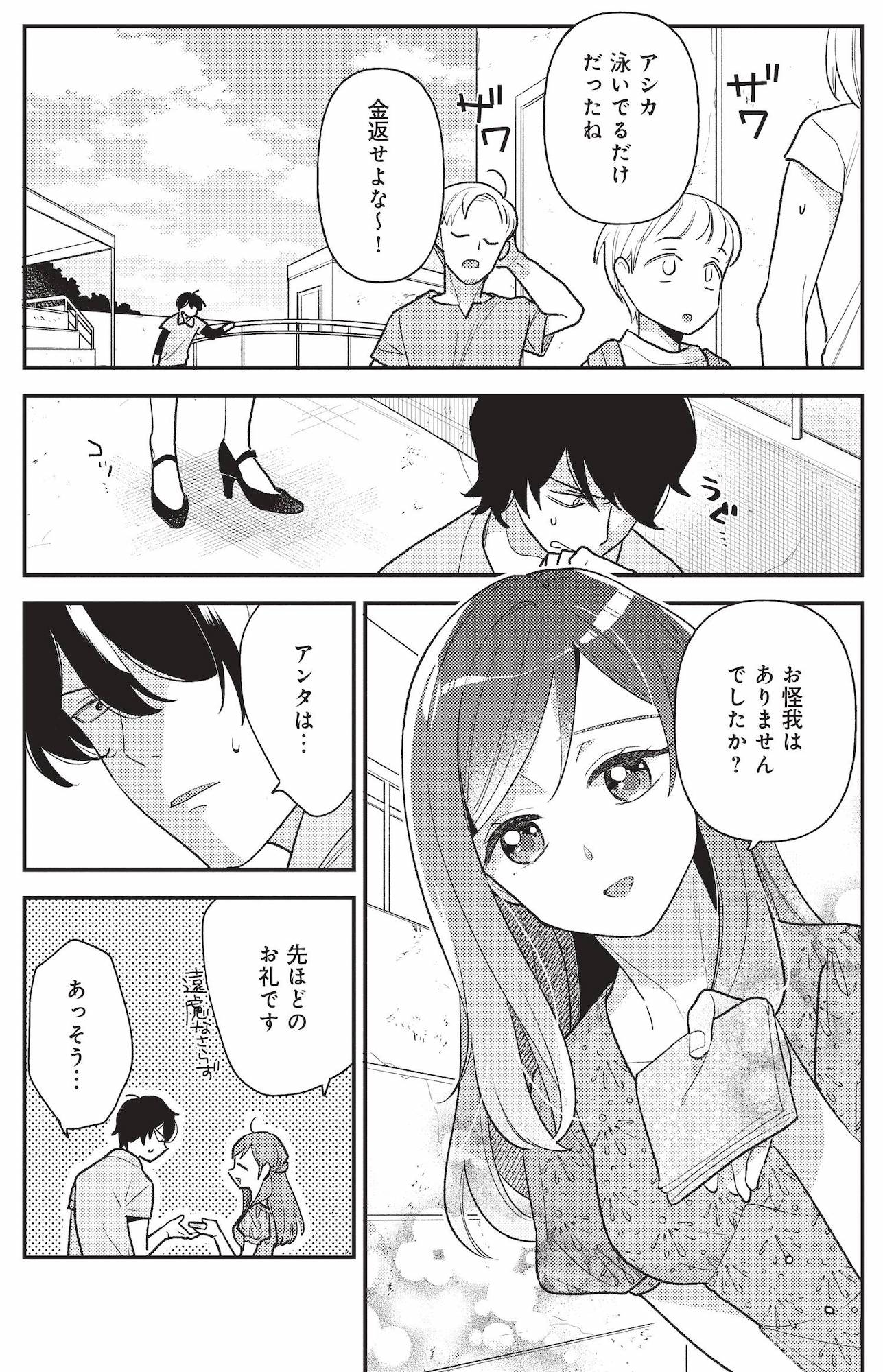 大水槽の前で涙を流していると、コワモテなイケメン飼育員・渡来に「そこに長時間居座ンな」と凄まれ、