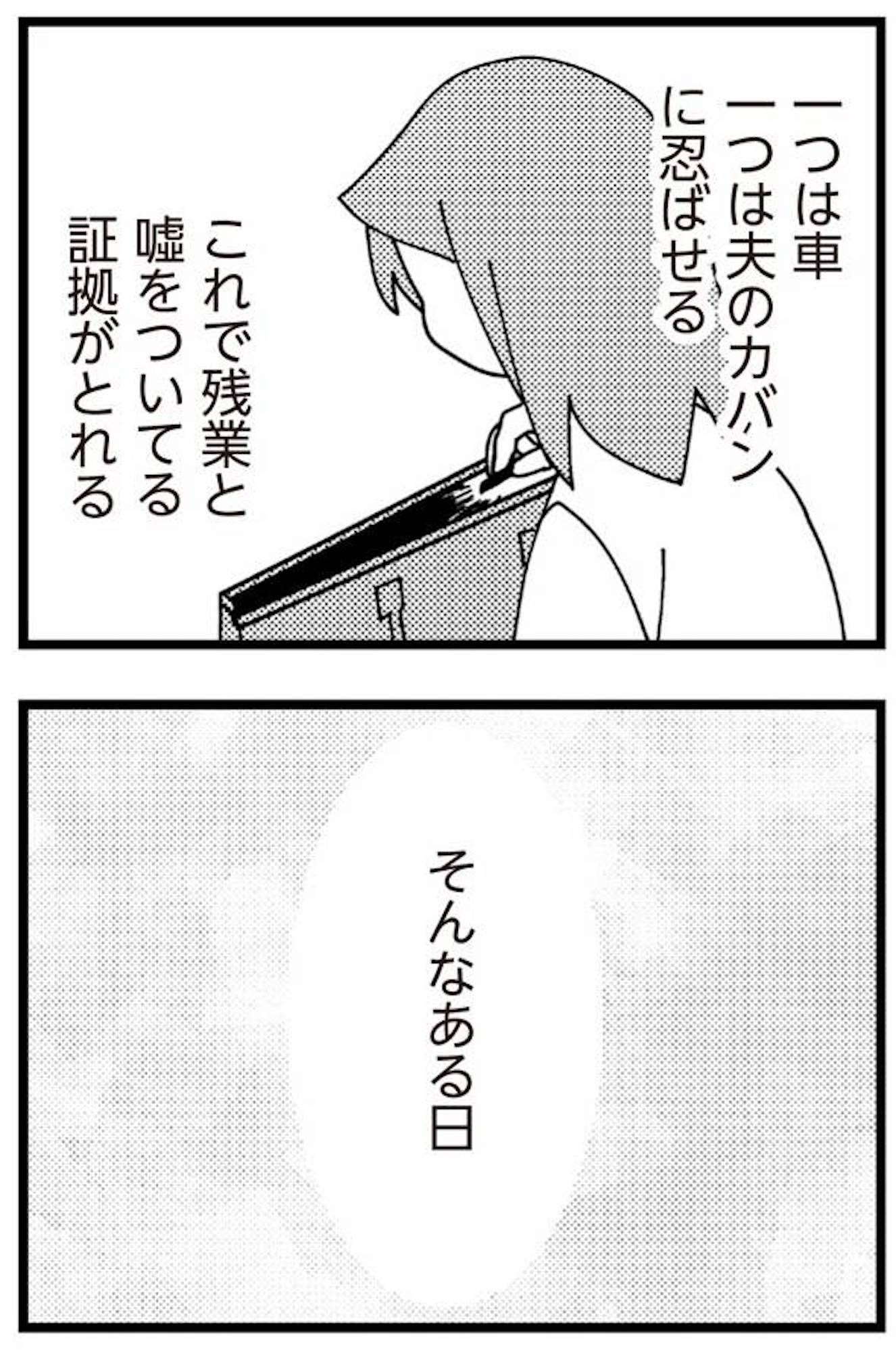 車と夫のカバンにGPSを忍ばせることに…。そして妻が次に考えた一手とは?【娘が初めて「ママ」と呼んだのは、夫の不倫相手でした #15】