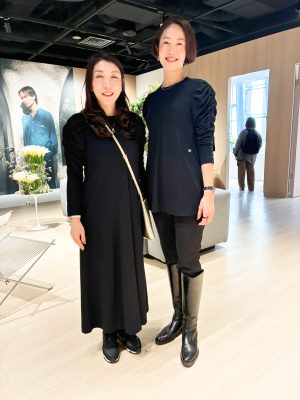 右・ReFa VITALWEAR 本部長 三上さんが着ているのは、長袖バージョンのモイストスムース ギャザースリーブプルオーバー(20,900円)。左・ブランドインストラクター 小林さんが着ているのがモイストスムース ギャザースリーブマキシレングスシャツ(28,600円)。もう、リカバリーウェアで何の迷いもなく通勤できる時代がきていますね……。