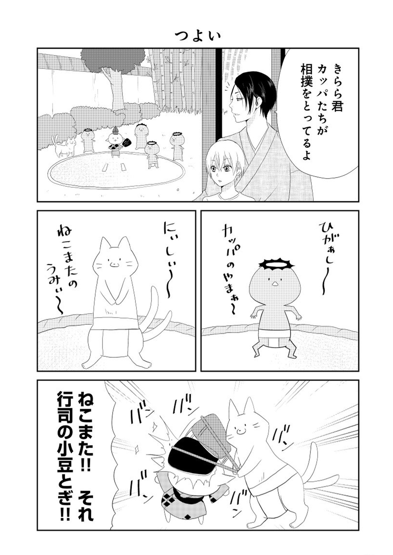 カッパ達が相撲をとっている! 相手はねこまた!! どっちが勝つかな!?【ウチの百鬼夜行 #5】