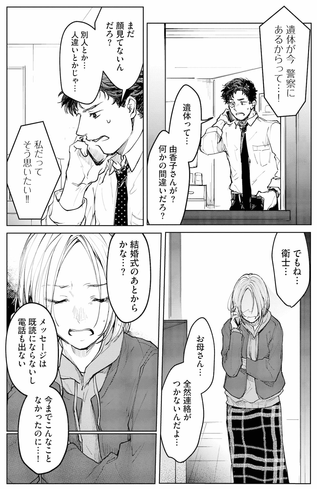 母が殺されたかもしれない…。動揺しながら夫に電話をかける【消えた母は見知らぬ遺体になってここにいる #6】