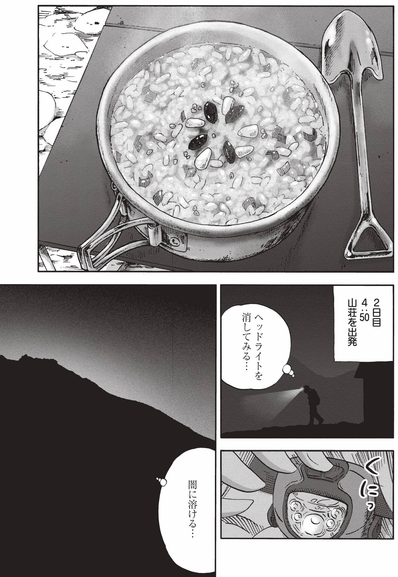 欲張りウィンナー麺、雲上の楽園コーヒーなどなど…。読むとお腹がすいて、山に登りたくなるアウトドア漫画