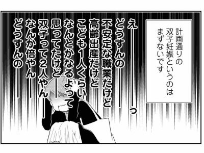 「胎嚢が2つ⁉」高齢出産で不安定な職業…慎重派の夫がまさかのマタニティブルーに!【なんもわからん双子育児 #4】