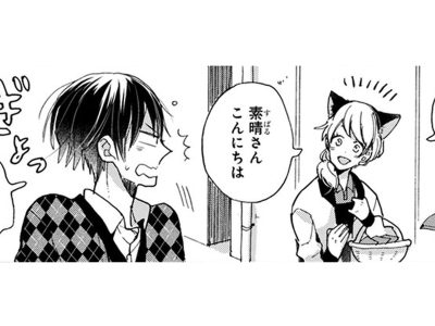 ペットショップに来たら店員さんが猫耳をつけて… 青年の猫耳姿はどんな感じかな?〈4コマ漫画〉【同居人はひざ、時々、頭のうえ。 #64】