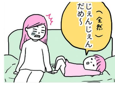 「じぇんじぇんだめ」ソファに寝ころび、ネガティブ発言。娘の身にいったい何が?【育児ってこんなに笑えるんや! #24】