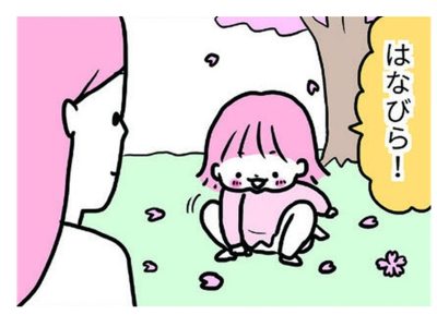 桜の花びらを拾って、乗っける。場所は母の…⁉その行動、鼻血ものかわいさ!!【育児ってこんなに笑えるんや! #26】