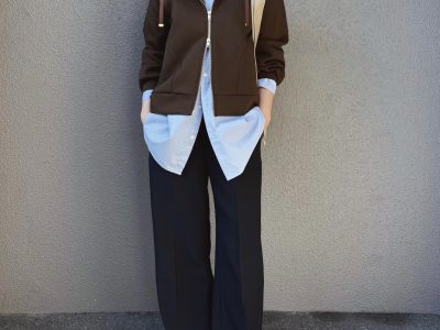 大人おしゃれなブラウン×ブルー配色。こなれ感が出る参考にしたい色遊び術【40代の毎日コーデ】