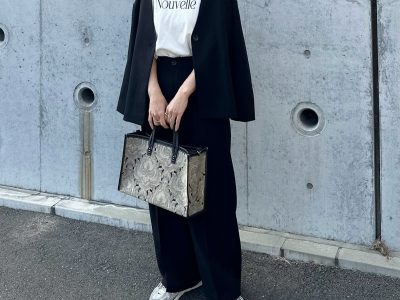 黒のセットアップをスニーカーで崩す。普段使いもオフィスでも映えるクールな着こなし【40代の毎日コーデ】