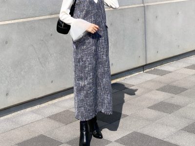 一枚でこなれる。ツイード素材のジャンパースカートを主役にした春のきれいめモノトーン【40代の毎日コーデ】