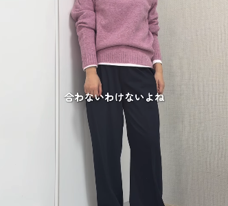 きれい色ニットを選ぶなら【ユニクロ】がいい!パープル×ネイビーで甘すぎないカラーコーデが完成【40代の毎日コーデ】