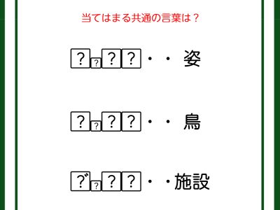 クイズです!「姿、鳥、施設を表す、共通の言葉を導きましょう」?には同じ文字が入ります【難易度LV3.・中辛】