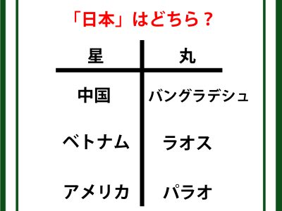 クイズです!「日本はどちら?」星と丸の下にある国名から共通点を考えましょう【難易度LV2.・甘口】