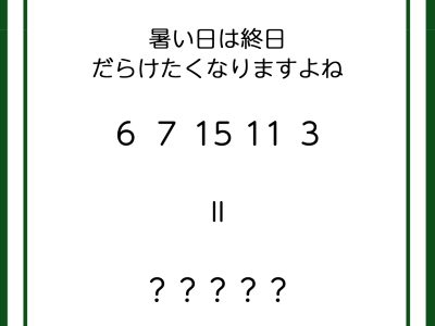 クイズです!「暑い日は終日だらけたくなりますよね」6、7、15、11、3とは?【難易度LV3.・中辛】