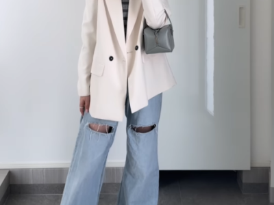 ZARAのオーバーサイズ白ジャケットが主役。×ワイドデニムで作るこなれ感ある春の着こなし【40代の毎日コーデ】