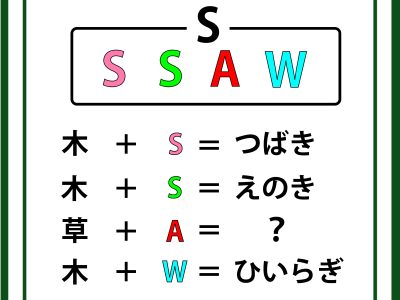 クイズです!「木+S=つばき、木+W=ひいらぎ」のとき、草+Aはなに?【難易度LV3.・中辛】