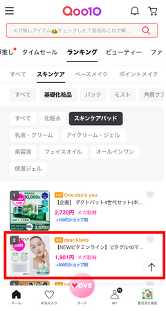 主力ビタミンラインの新商品である「ビタグル10マスク」は、2025年6月に開催されたQoo10メガ割において、前回のメガ割対比で+2,957%という驚異的な成長を記録し、スキンケア・パッドカテゴリで一気に2位にランクイン。新商品としては異例の成長を見せました。