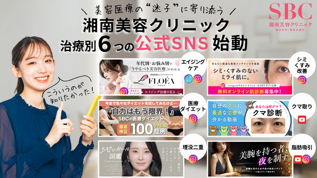 SBCマーケティング株式会社(所在地:東京都新宿区、代表:片寄裕之)がマーケティング支援を行う湘南美容クリニックは、美容医療業界のSNS発信において「治療単位」という新たなスタンダードを提示すべく、人気の高い治療に特化した6つの治療別SNSアカウントを新たに立ち上げました。