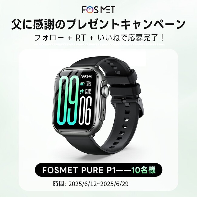 FOSMET父の日プレゼントキャンペーンあと3日!「Pure P1」スマートウォッチを10名様にプレゼント、いいね+RT+フォローだけで!