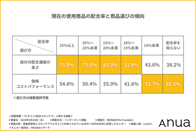 株式会社The Foundersが販売する化粧品ブランド「Anua(アヌア)」(https://anuashop.jp/)は、スキンケアでビタミンCを取り入れている20代~40代の女性を対象に、「ビタミンC成分スキンケア」に関する調査を実施しました。
