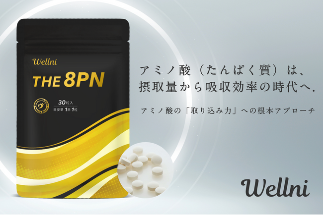 今回発売となるサプリメントは、ウェルニ初となる8PNを使用した製品です。アミノ酸の「取り込み力」への根本アプローチで、理想的な身体づくりをサポートします。