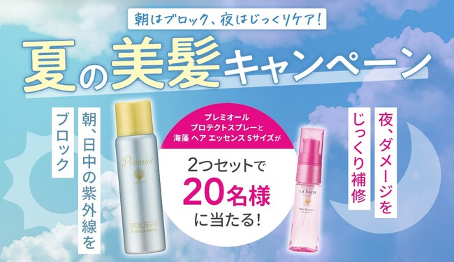 年々厳しさを増す日本の夏。猛暑の長期化に加え、強い紫外線が降り注ぐ季節となっています。特に髪と頭皮が浴びる紫外線量は、顔の約3倍ともいわれており、知らず知らずのうちに髪と頭皮にダメージが蓄積されてしまいます。ラサーナでは、紫外線による髪のダメージが気になるこの季節にこそ、夜だけでなく「朝のヘアケア」の重要性を広く知っていただきたいという思いから、朝用・夜用のヘアケアアイテムをセットにしたプレゼントキャンペーンを開催いたします。