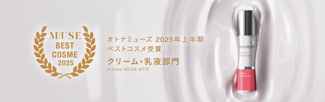 株式会社プロティア・ジャパン(本社:東京都港区、代表取締役社長:マーク C. ミンター)が日本総販売代理店を務めるメディカル発想のスキンケアブランド「エンビロン」の「スーパーモイスチャライザー」が、宝島社の人気ファッション雑誌「otona MUSE 」2025年8月号(2025年6月27日発売)の「オトナミューズ2025上半期ベストコスメ」にて「クリーム・乳液部門2位」を受賞いたしました。