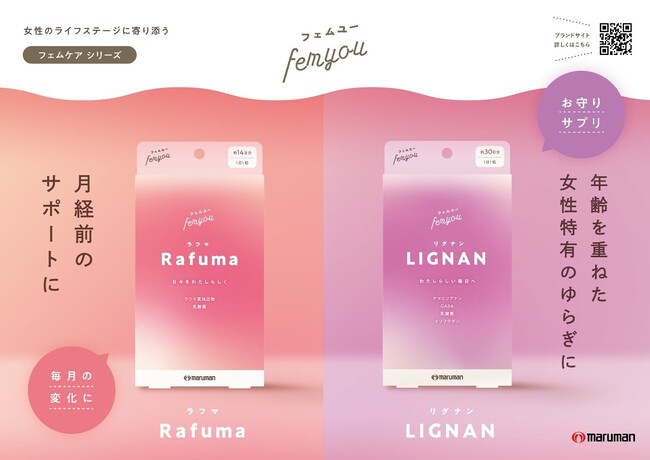 「Rafuma(ラフマ)」はリラックスやストレスケア、「LIGNAN(リグナン)」はエイジングケアやホルモンバランスに注目した商品です。これらのサプリメントによって、女性の「わたしらしさ」を取り戻し、より前向きで健康的な毎日を過ごせるよう開発いたしました。