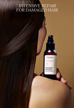 ロクシタンのヘアケアで大人気のダメージケア「インテンシヴリペア」シリーズからリニューアル登場するヘアミルクセラムは、髪の内外からアプローチ。98%自然由来成分で髪のダメージ補修、うねり広がりを防ぎ、アイロンの熱などからの保護、ツヤ・なめらかさアップを1本で叶えます。24時間*、思うままのするんとまとまる髪が一日中続きます。使い方はとても手軽。タオルドライした髪や乾いた髪に、適量を少量ずつ手に取ってよく伸ばし、毛先を中心に髪全体になじませるだけ。パッケージもチューブから使いやすいボトルプッシュ型にリニューアルし、持ち運びもより便利になりました。夏の朝の支度は1秒でも短縮したい型は、マストバイのヘアミルクセラムです。ぜひ店頭で使用感をおためしください。