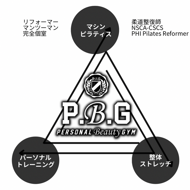 弊社(PBG)は、2021年に1号店をオープンし「大切な人を招待できる場所」をテーマにパーソナルジム運営をスタートしました。PBGでは、パーソナルトレーナー資格・ピラティス資格を保有するトレーナーがお客様の指導にあたり、お客様に必要な内容を組み合わせて、オーダーメイドのトレーニングメニューをご提供させていただいております。