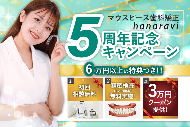 マウスピース歯科矯正hanaravi(ハナラビ)5周年!を記念したキャンペーン開始とオンライン診療サービスとの提携を発表