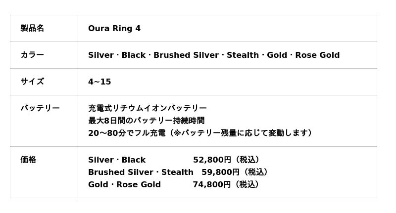■Oura Ring 4 製品概要