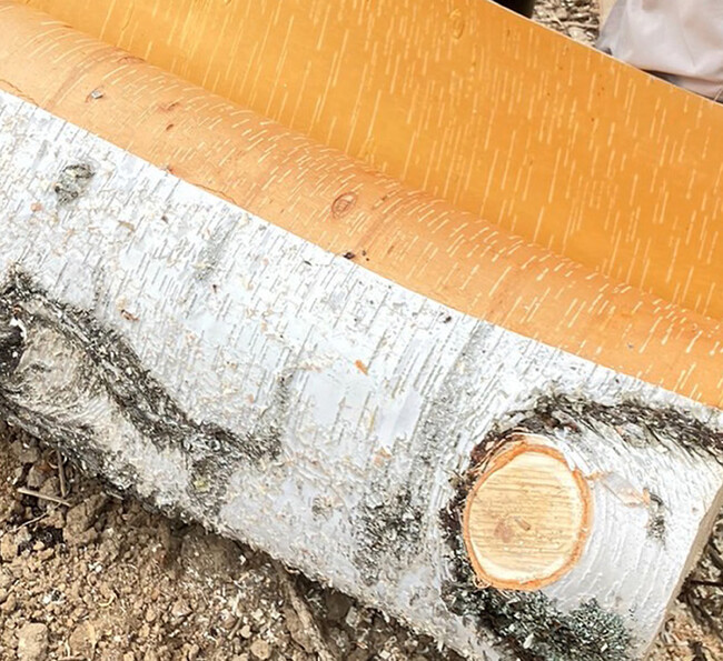 旬シリーズに「白樺」が初めて登場したのは、2022年。未来の森を育てるために間伐された白樺の木を、江丹別の森を管理する木こりの野中瑠馬さんから分けていただき、この季節ならではのスキンケアが誕生しました。