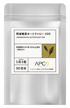 「阿波晩茶オートファジー100TM」は、APGO社によって開発・製品化された阿波晩茶エキス配合サプリメントです。