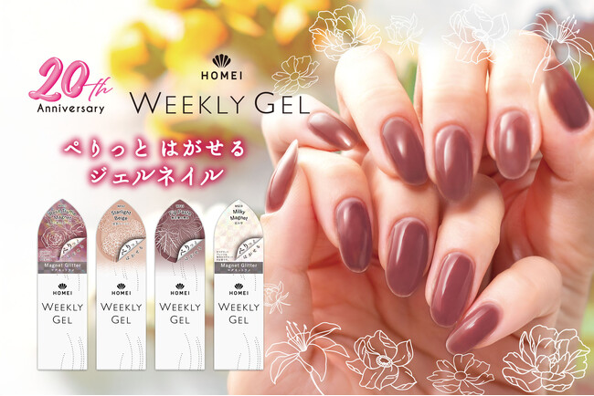 “Self Nail Decoration”(指先から自分らしくときめく)をコンセプトに、セルフネイル市場をリードしてきたHOMEI(株式会社グルーブ:大阪市生野区 代表:川端一弘)は、人気シリーズで気軽にセルフジェルネイルを楽しめる「HOMEI ウィークリージェル」より秋冬のムードにぴったりな新色と限定色を発売いたします。