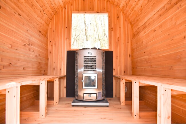 サステナブルな素材の信州産カラマツ材を使用したサウナキャビン「vetaa」の設置写真