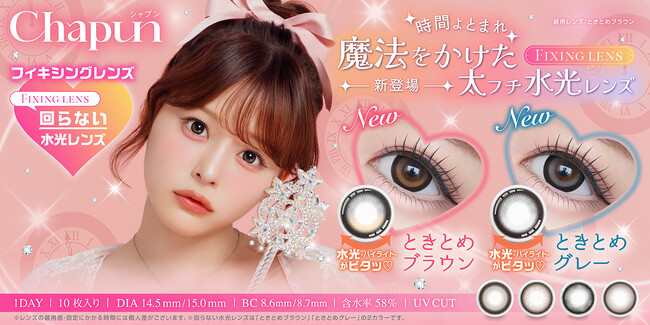 PIA株式会社(本社:東京都品川区 代表取締役:見原 博道)は、2025年8月19日(火)に齊藤なぎささんがイメージモデルを務めるカラーコンタクトブランド『Chapun(シャプン)』より回らない太フチ水光レンズ「ときとめブラウン」「ときとめグレー」の2カラーを発売いたします。