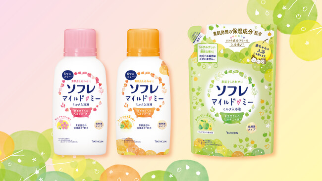 株式会社バスクリン(本社:東京都千代田区 社長:三枚堂正悟)は、デリケートなお肌を考えた低刺激タイプの入浴液「ソフレ マイルド・ミー ミルク入浴液」シリーズより、新香調「みずみずしい果実の香り」をパウチタイプで8月20日(水曜日)より新発売いたします。あわせて、既存アイテムにも素肌発想の保湿成分を新たに配合、さらにボトルのキャップ形状を見直すことで、より快適にご使用いただけるようリニューアル発売いたします。心地よく広がる香りとともに、家族みんなの毎日のスキンケアをやさしくサポートします。
