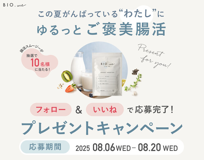 「BIO.me」は、そんな頑張りすぎない、自分らしいダイエットを応援します。食事を無理に減らすのではなく、いつもの朝に1杯プラスするだけで、手軽に腸内環境を整え、内側からキレイをサポート。このキャンペーンを通して、心と体が喜ぶ“ゆる腸活”という新しいダイエット習慣を体験していただきたいと考えています。