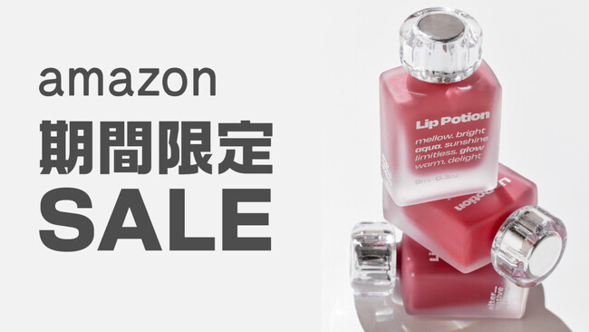 2025年8月11日(月) 0:00 ~ 8月17日(日) 23:59 Amazon公式ショップにてLip Potion Aqua Glow(リップポーションアクアグロー)8色を15%引きの特別価格で、期間限定セールを開催します!