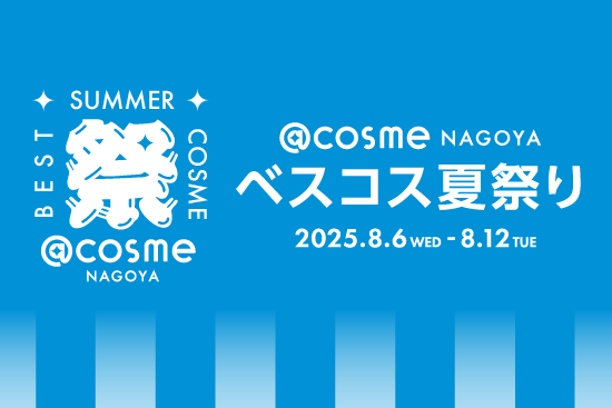 株式会社アイスタイル(代表取締役社長:遠藤 宗)は、8月6日(水)~8月12日(火)の間、今年6月19日(木)にグランドオープンしたばかりのフラッグシップショップ「@cosme NAGOYA」にて、6月11日(水)に発表した「@cosmeベストコスメアワード2025上半期新作ベストコスメ」受賞商品を体験できるポップアップイベント「@cosme NAGOYA ベスコス夏祭り」が開催中であることをお知らせいたします。